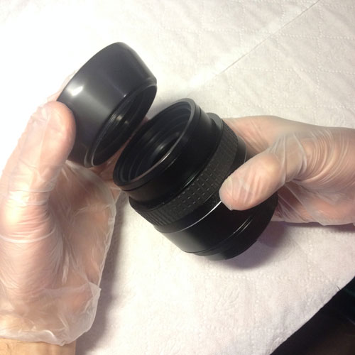 Начинаем проектирование корпуса. Прорабатываем несколько вариантов. Ввиду сложности изготовления многолепестковой диафрагмы останавливаемся на варианте со вставными диафрагмами-пластинками. По той же причине вместо многозаходного резьбового геликоида делаем винтовую канавку